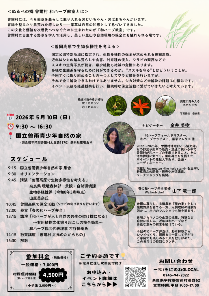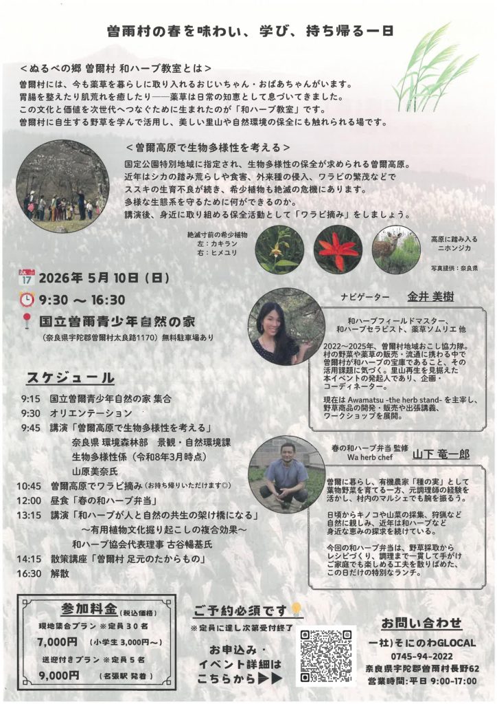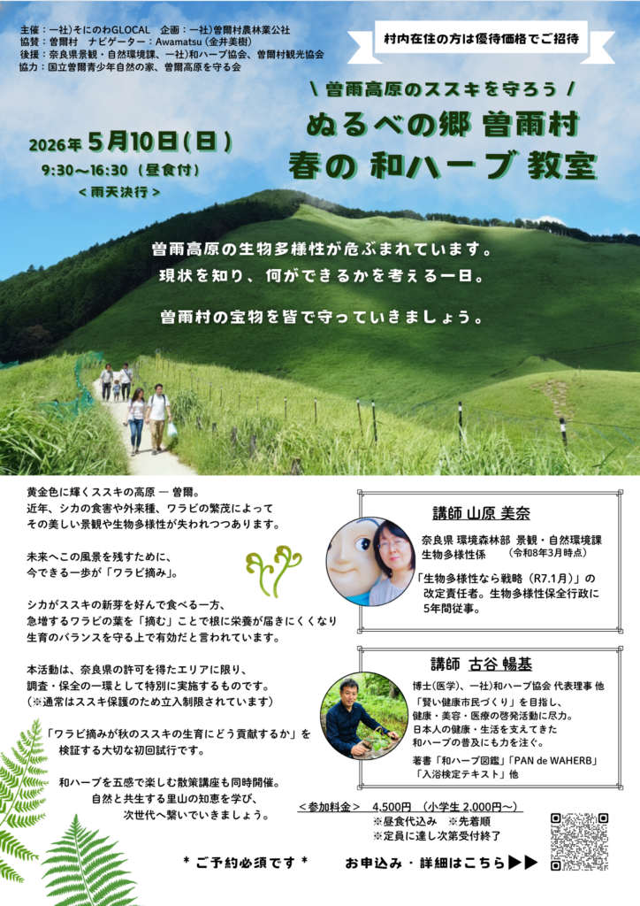 - 【後援】一般社団法人 和ハーブ協会、曽爾村観光協会